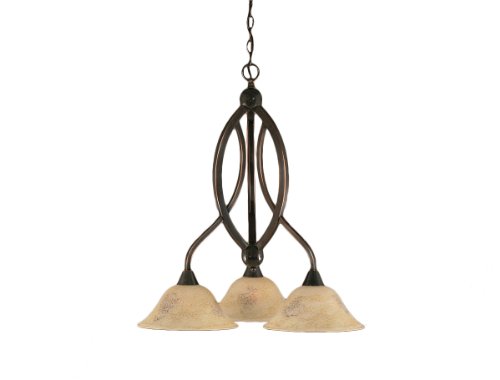 The Detailed Description of Toltec Lighting 263-BC-518 Bow Three-Light Down light Chandelier Black Copper Finish with Italian Marble Glass Shade, 10-InchFeatures