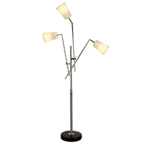 Finish:Polished Chrome, Light Bulb:(3)60w A19 Med F Incand Cereberus Adjustable Arm Floor Lamp features a coarse cream linen shade, polished chrome finish and black marble base. Includes a 4-way switch. 80' Max adjustable height.