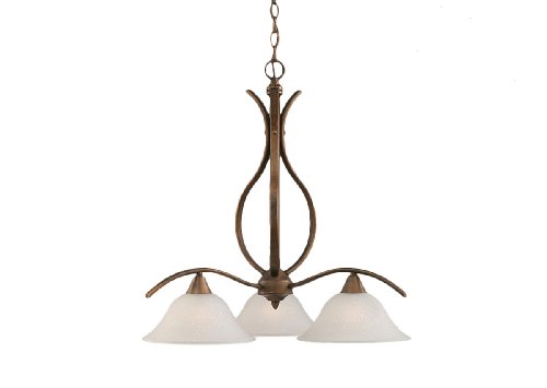 The Toltech Lighting 296-BRZ-512 Swoop Three-Light Down light Chandelier Bronze Finish with Dew Drop Glass Shade, 10-Inch is a ceiling light that features a 10-Inch dew drop glass shade. This chain hung fixture comes with 10-Feet of chain and 11-Feet of wire. Product dimensions (in Inch): 25.75 H by 22.5 W. Fixture requires 3 100-Watt medium base incandescent bulbs, not included. Product safety tested and approved by the UL/CUL in the US and Canada. Assembly required.