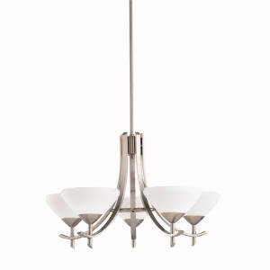 Kichler Lighting 1679AP Olympia 5LT Chandelier proves that simple can be dramatic, and that balance is the key to beautiful design. Glowing Antique Pewter finish complements the softly contoured Satin Etched Cased Opal glass for a sleek, contemporary style. Whether you are looking for that perfect fixture for the dining room or entry foyer; the exquisite lines of this fixture create an element that adds both form and function to this elegant style making this fixture a perfect choice if you are looking to bring a touch of elegance to your home. 1679AP is 27IN wide x 16.75IN high. 1679AP comes one per package, and requires five 60W G16.5 candelabra base incandescent bulbs (not included), dimmable using a standard incandescent dimmer. Since 1938, Kichler Lighting has offered a distinctive array of lighting solutions that reflect your individual personality, tastes and plans. Kichler brings you an unparalleled variety of exciting style families, unique finishes, fresh colors and unequaled quality. Whether its casual, contemporary, transitional or traditional, you'll find it with Kichler, lighting that defines your style.