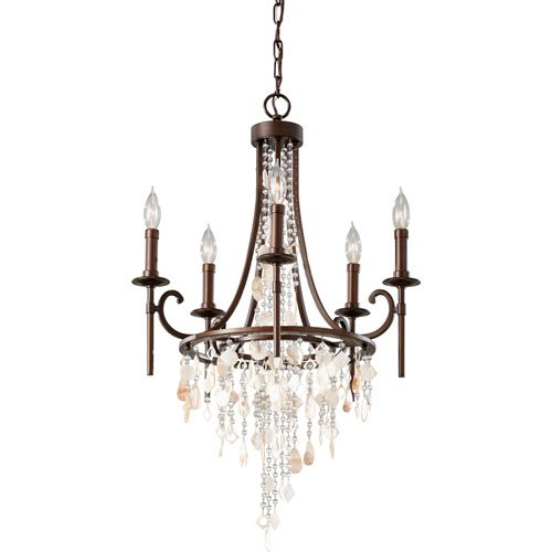 Murray Feiss F2663/5HTBZ Cascade Collection 5-Light Chandelier features a rich Heritage Bronze finish with glass crystal beads and natural shell accents making this a traditional and classy piece you could hang in any decor. You could hang it in an entry with its dramatic, but delicate appeal, or over a dining room table to showcase the classic charm. The F2663/5HTBZ is 21-Inch wide by 22-Inch high, and the canopy is 5.5-Inch in diameter. The F2663/5HTBZ comes one per package, includes 180-Inch of wire, 60-Inch of chain, and requires five 60-Watt candelabra base incandescent bulbs (not included), dimmable using a standard incandescent dimmer. More than 50 years ago Murray Feiss began by offering a small assortment of porcelain figurine lamps, they were topped with his Mother's hand sewn lampshades. Today at Murray Feiss we are pleased to offer a full line of interior and exterior residential lighting and lamps. Beautiful Design and Exceptional Quality have been hallmarks of Murray Feiss since the beginning. From the initial sketches to the finished product each step is equally important and overseen by a team of dedicated lighting professionals. Whatever your look is, you will find it at Feiss. Furnish both the interior and exterior of your home with exquisite lighting at a variety of price points to fit any budget and satisfy your personal design expression. We source quality metals, crystal, marble, ceramics and yes porcelain as well as many other materials to achieve distinctive looks across all of our offerings. with pride in our company's past and a commitment to the future, employees from Coast to Coast and from across the Globe all work together to deliver the very best in lighting and service.