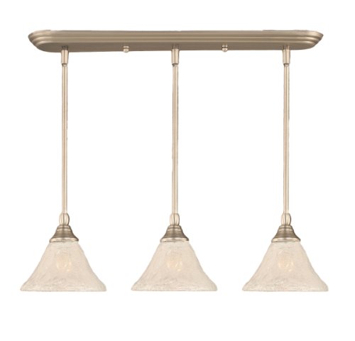 The Toltech Lighting 25-BN-451 Multi Light Mini-Pendant Brushed Nickel Finish with Italian Bubble Glass Shade, 7-Inch is a ceiling light that features a 7-Inch Italian bubble glass shade. canopy: w 4.75-Inch by l 24-Inch by h 2.5-Inch comes with 3-6-Inch, 6-12-Inch, and 3-18-Inch stem sections. Product dimensions (in Inch): 6.25 H by 7 W. Fixture requires 3 100-Watt medium base incandescent bulbs, not included. Product safety tested and approved by the UL/CUL in the US and Canada. Assembly required. This model is also available in the following finishes: Black Copper, Bronze.