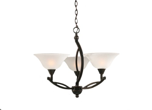 The Toltech Lighting 273-BC-512 Bow Three-Light Down light Chandelier Black Copper Finish with Dew Drop Glass Shade, 10-Inch is a ceiling light that features a 10-Inch dew drop glass shade. This chain hung fixture comes with 10-Feet of chain and 11-Feet of wire. Product dimensions (in Inch): 20 H by 21.75 W. Fixture requires 3 100-Watt medium base incandescent bulbs, not included. Product safety tested and approved by the UL/CUL in the US and Canada. Assembly required. This model is also available in the following finishes: Brushed Nickel.
